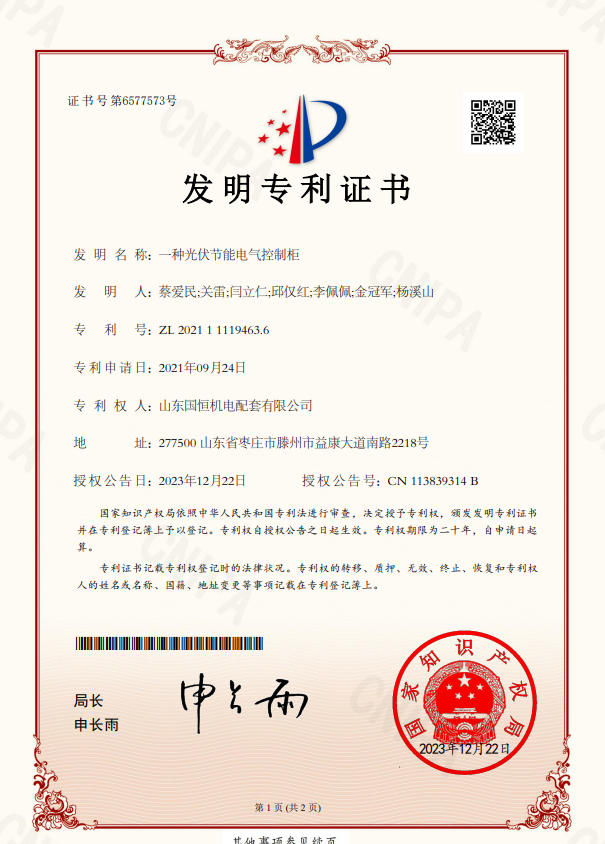 山東國恒機(jī)電配套有限公司簡      介 山東國恒機(jī)電配套有限公司是一家集新能源、高科技、智能化生產(chǎn)研發(fā)、制造、銷售為一體的綜合性現(xiàn)代化高新技術(shù)企業(yè),公司座落在魯班故里、墨子之鄉(xiāng)滕州,公司始建于2005年,注冊(cè)資本1億元,擁有各類中、高級(jí)專業(yè)技術(shù)人員100余名。主營業(yè)務(wù)涉及高科技智能電力裝備、新能源儲(chǔ)備輸送,220kv及以下輸變電工程勘察設(shè)計(jì)、制造、銷售、安裝、售電和智能充電樁能效運(yùn)維,并從事生產(chǎn)制造交直流充電樁設(shè)備、成套開關(guān)設(shè)備、各型號(hào)高低壓開關(guān)柜、箱式變電站等電氣設(shè)備,是棗莊地區(qū)唯一一家國資入股的新能源高端品牌企業(yè)。公司擁有獨(dú)立… 【查看更多】